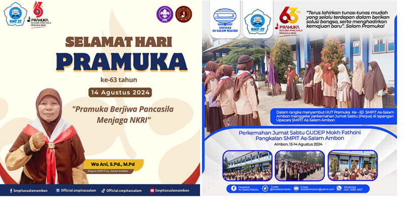 Muslimin (Ketua SAKO Pramuka JSIT Indonesia Wilayah Maluku) menjadi Pembina Upacara. Pagi itu, lapangan SMP IT As-Salam Ambon bertambah kemeriahannya dengan kebersamaan SMA As-Salam Ambon dalam upacara tersebut. Seluruh guru dan peserta didik SMA As-Salam Ambon turut menjadi peserta upacar HUT Pramuka ke-63. SMA As-Salam Ambon yang berada dalam satu kompleks dengan SMP IT As-Salam acapkali mengadakan kegiatan upacara bersama, selain sholat berjamaah di jam sekolah. Wa Ani, Kepala SMP IT As-Salam selanjutnya juga akan segera menjalankan gagasan sholat Jumat bersama SMP IT As-Salam Ambon dengan SMA As-Salam Ambon.