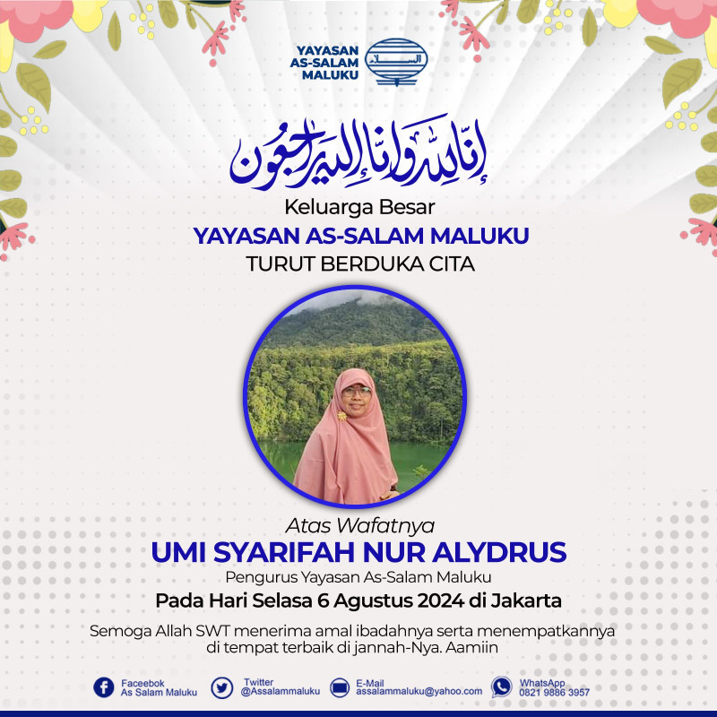 Yayasan As-Salam Maluku khususnya. Ungkapan bela sungkawa beserta doa istirja