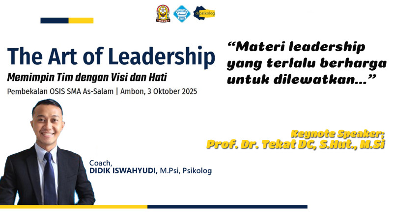 Kendatipun secara daring melalui media zoom meeting, Coach Didik (sapaan dari warga sekolah) mempersiapkan dengan istimewa. Di waktu yang sempit karena persiapan Jumat, Didik menyampaikan materi yang diberi judul The Art of Leadership, Memimpin dengan Visi dan Hati, disiarkan langsung secara live stream di kanal Youtube SMA As-Salam Ambon.